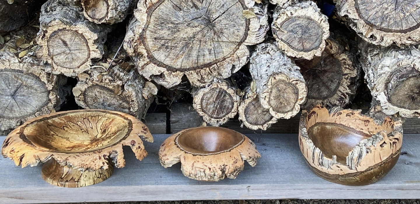 Yes, this is where corks come from! The bark of this tree can be removed to make corks. The tree then re-generates the bark so that 6 years later it can be removed once again. When a friend of mine said that he was having his cork oak tree cut down and asked if I wanted some of it, I was thrilled to say yes! I have a bunch of this fun and unique wood and would love make something from it just for you!